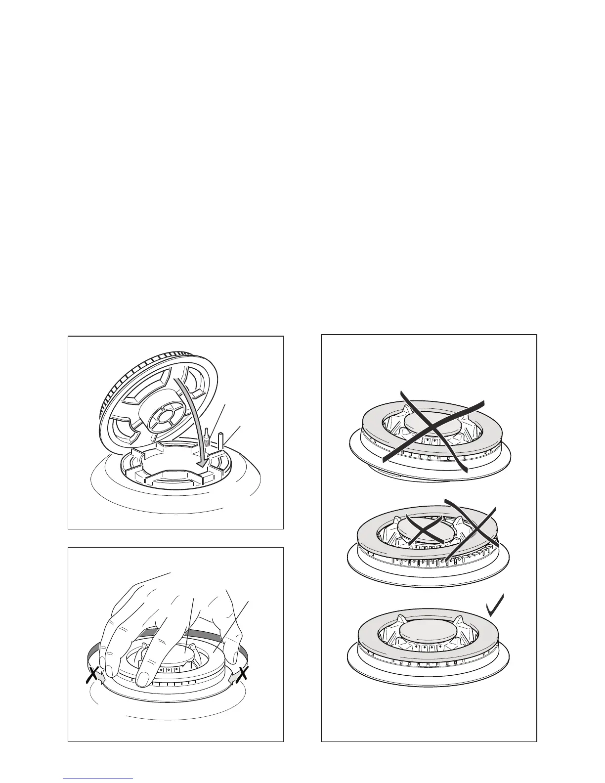 The triple ring burner must be correctly positioned (see fig. 8.5); the burner rib must be
