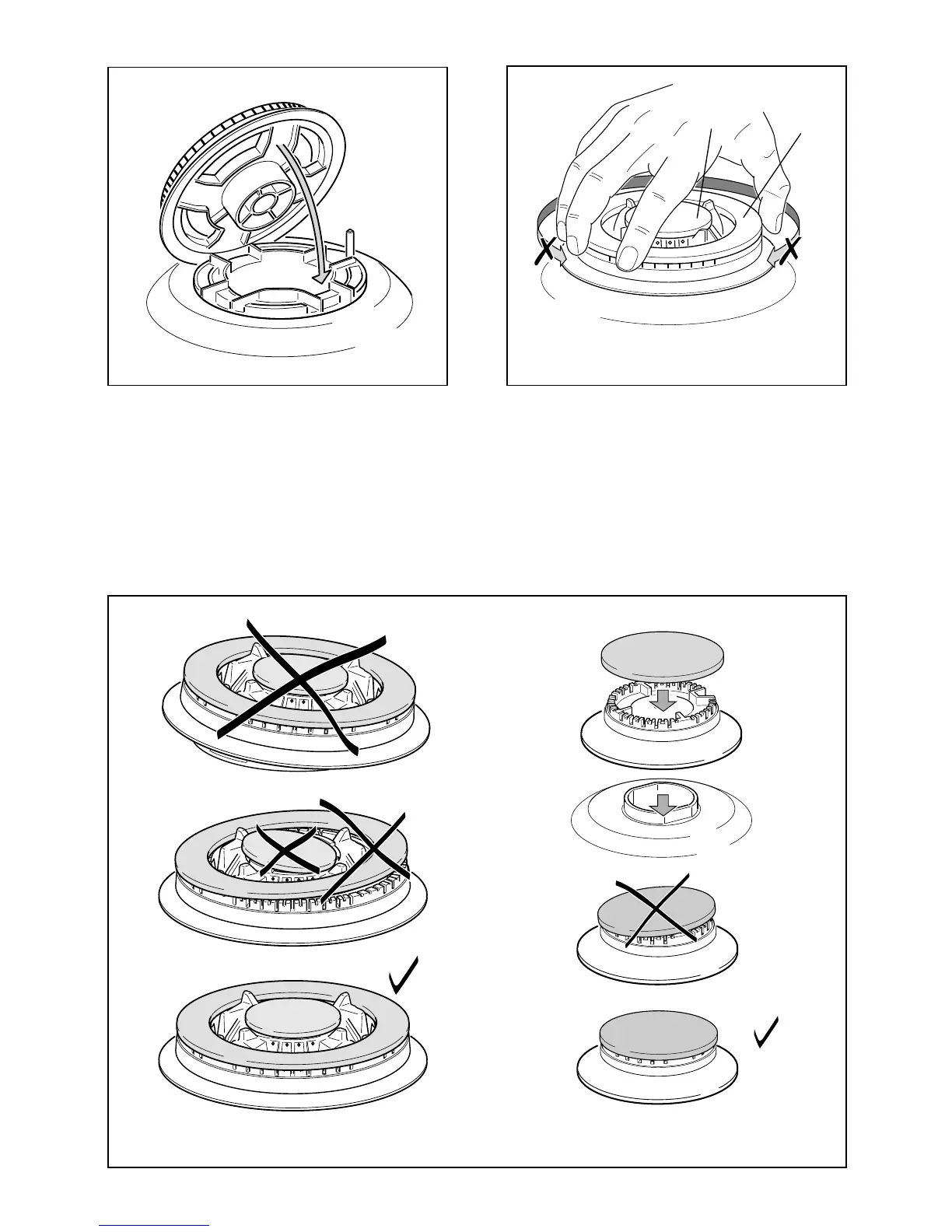 The triple ring burner must be correctly positioned (see figs. 7.2-7.3); the burner rib must