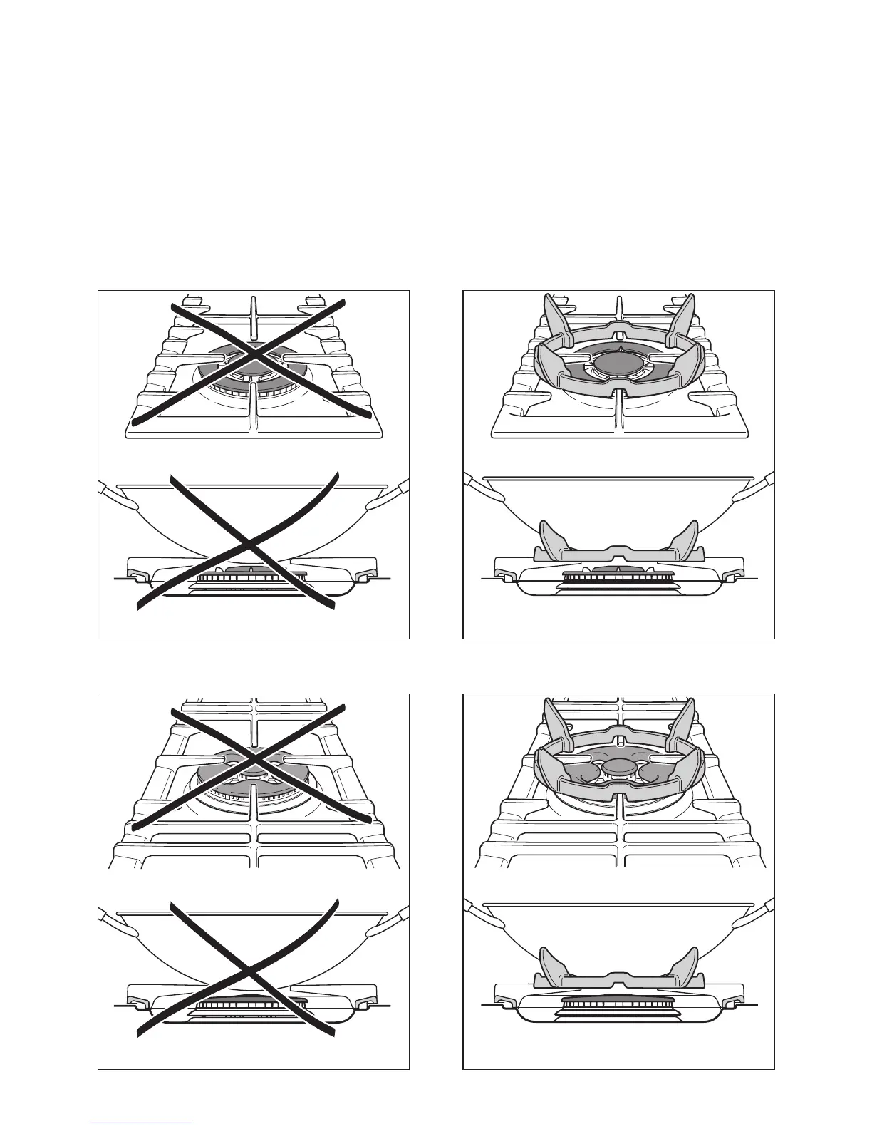 The special grille for wok pans (figs. 4.6b, 4.7b) MUST BE PLACED ONLY over