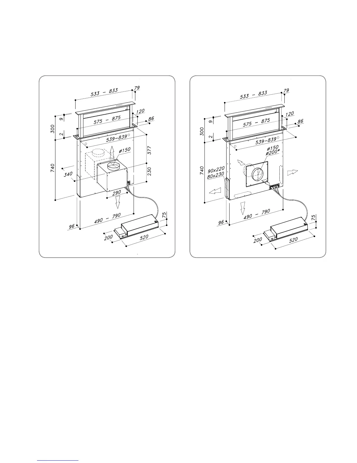 Note: The Downdraft worktop cutout can be connected to the hob cutout,