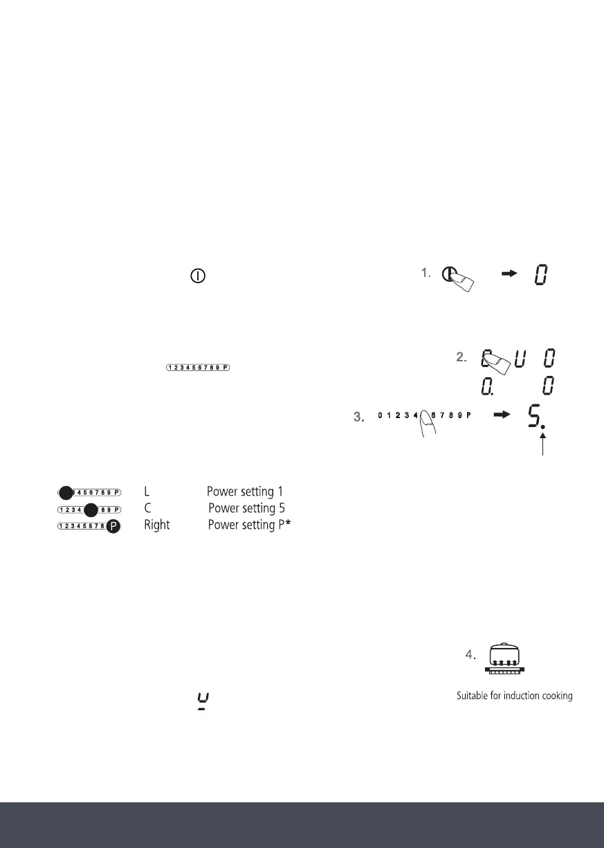 recognition recognises which cooking zone has a pan set up and shows 0 in the corresponding