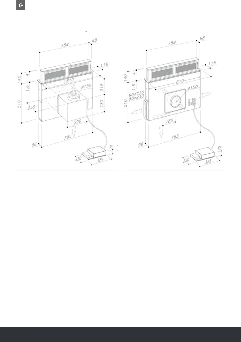 Note: The Downdraft worktop cutout can be connected to the hob cutout,