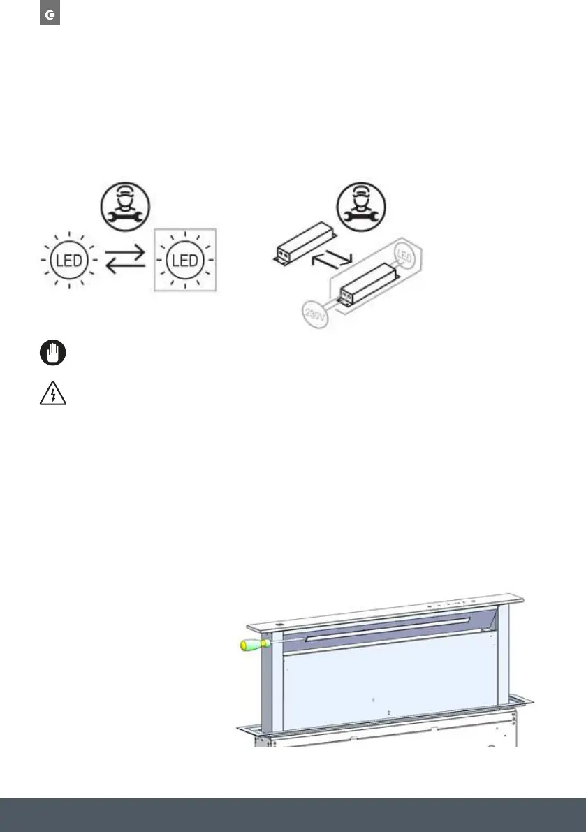 The LED light must be replaced by an authorised engineer or similar only. For more