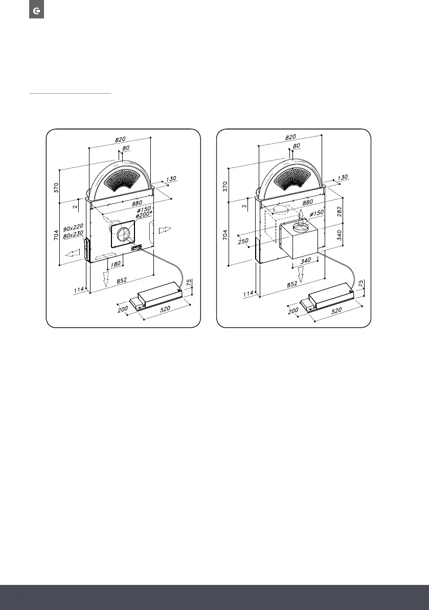 Note: The Downdraft worktop cutout can be connected to the hob cutout,