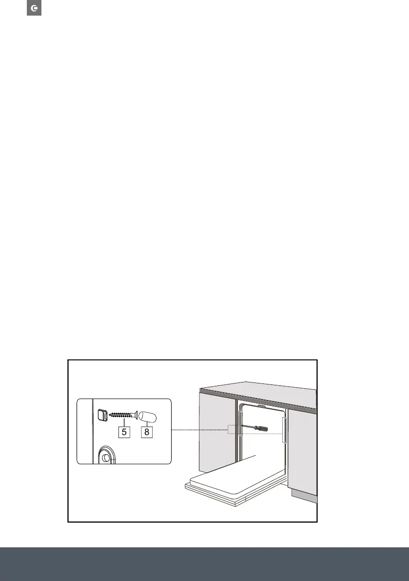9. The dishwasher must be secured in place. Fix the side with screws.