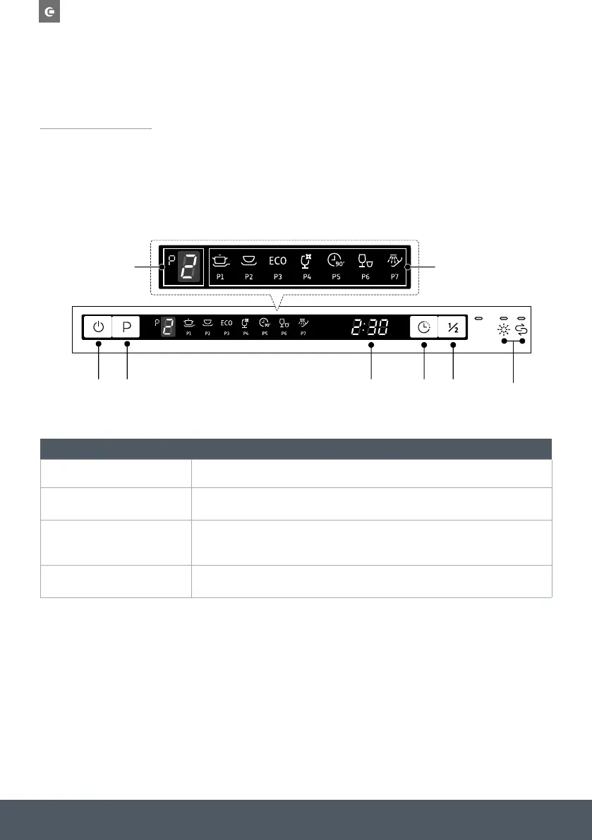 1 - Power Press this button to turn on your dishwasher, the screen lights up.