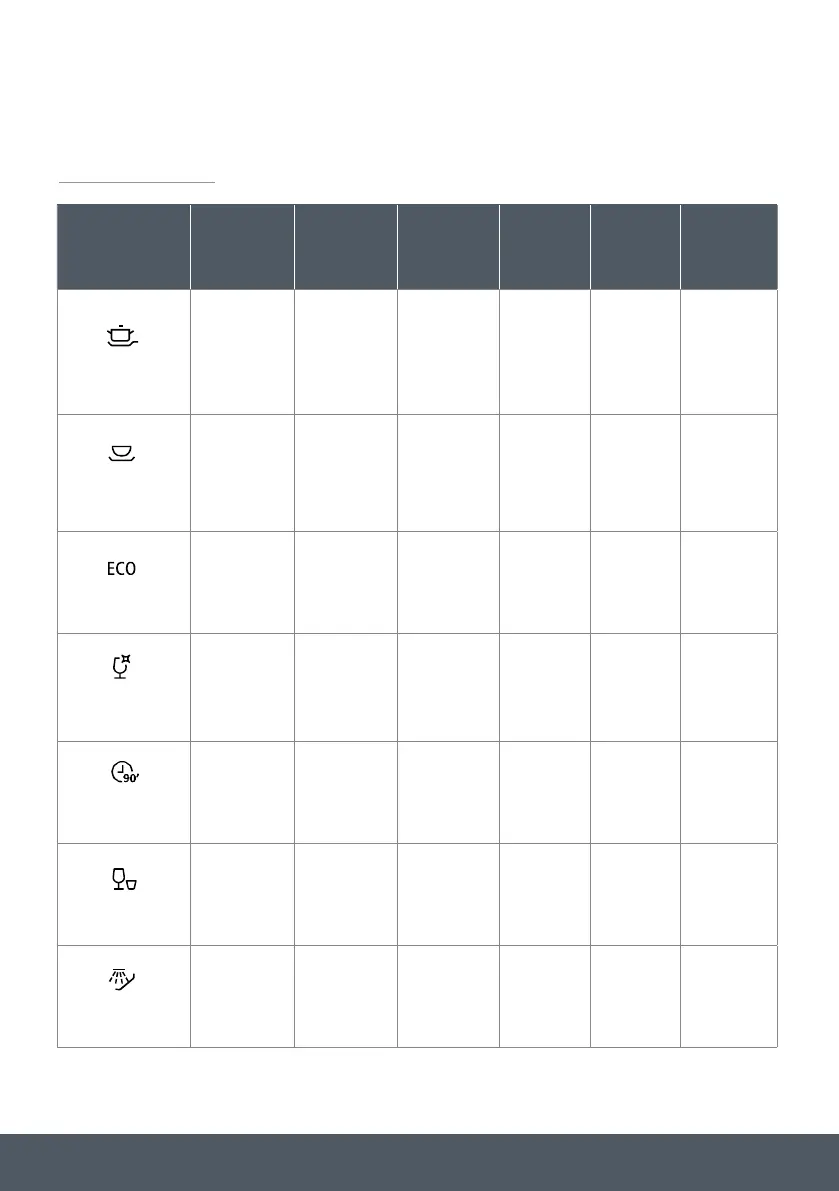 WASH CYCLE TABLE
