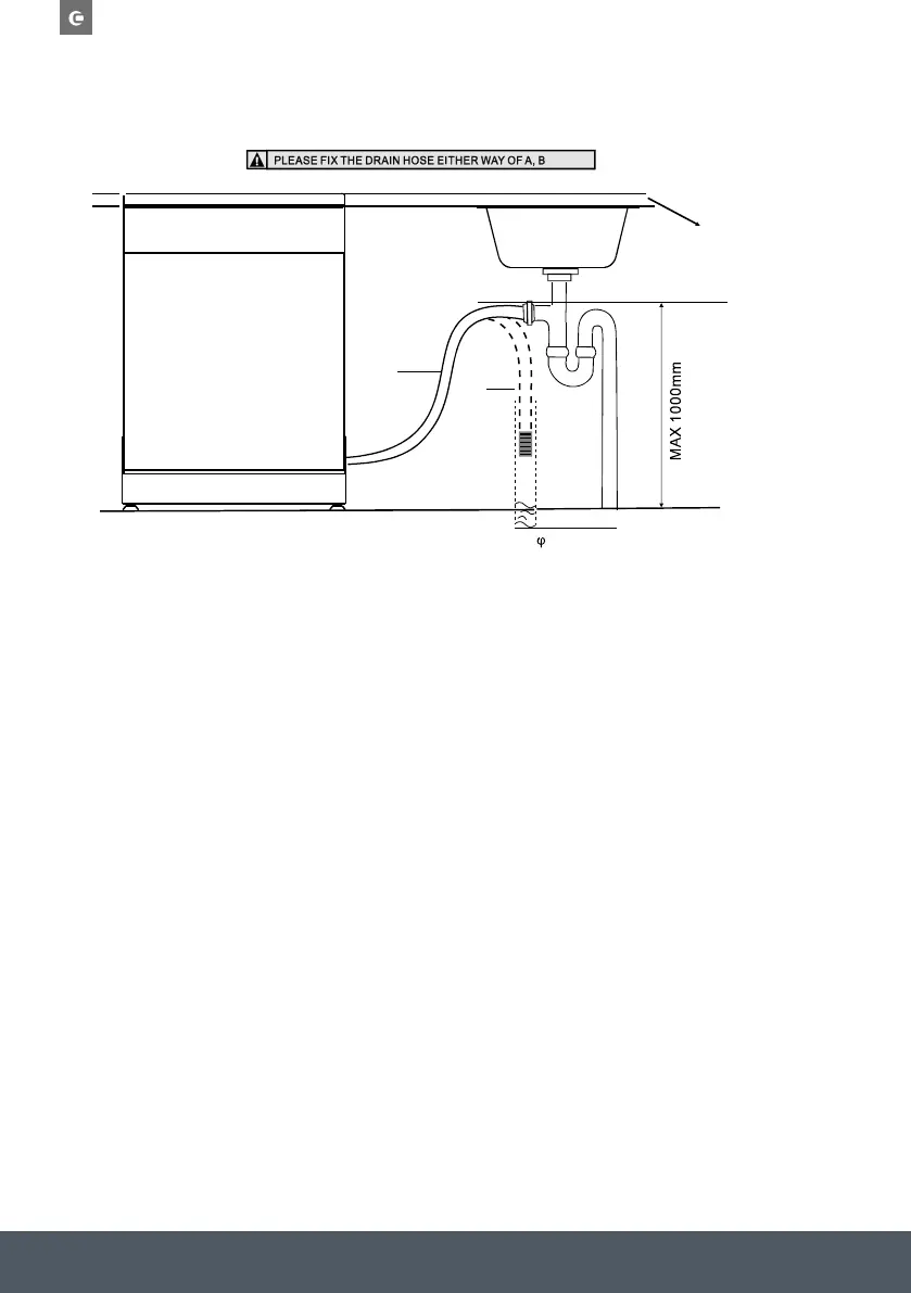 Insert the drain hose into a drain pipe with a minimum diameter of 40mm, or let it run into the sink, making sure to