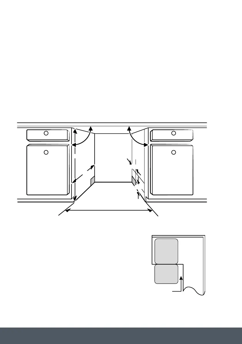 › Less than 5mm between the top of dishwasher and cabinet and the outer door aligned to