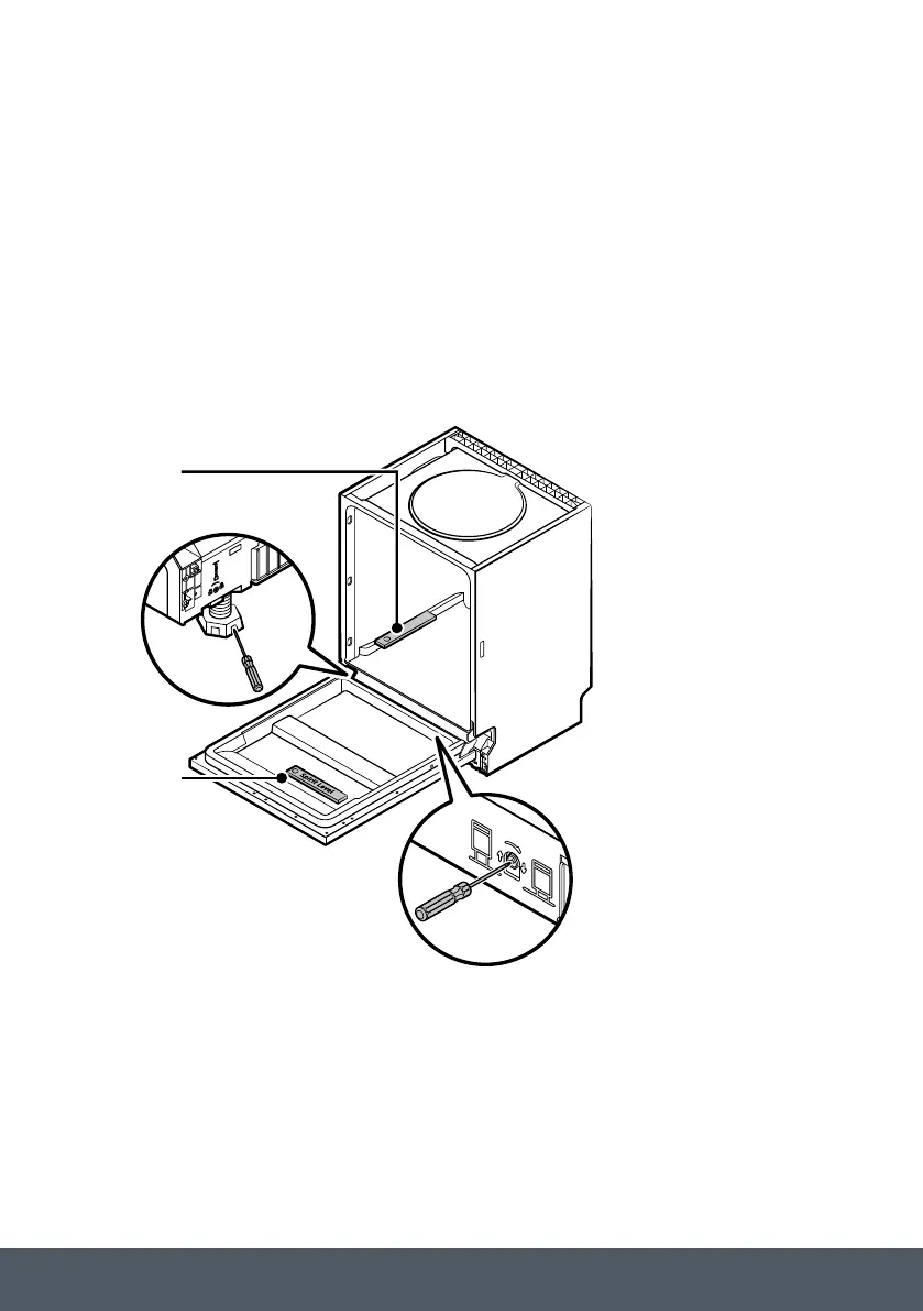 › Level the dishwasher by adjusting the three levelling legs individually.