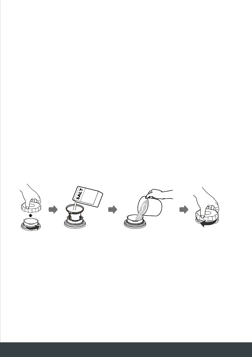 The salt container must only be refilled when the salt warning light ( ) in the