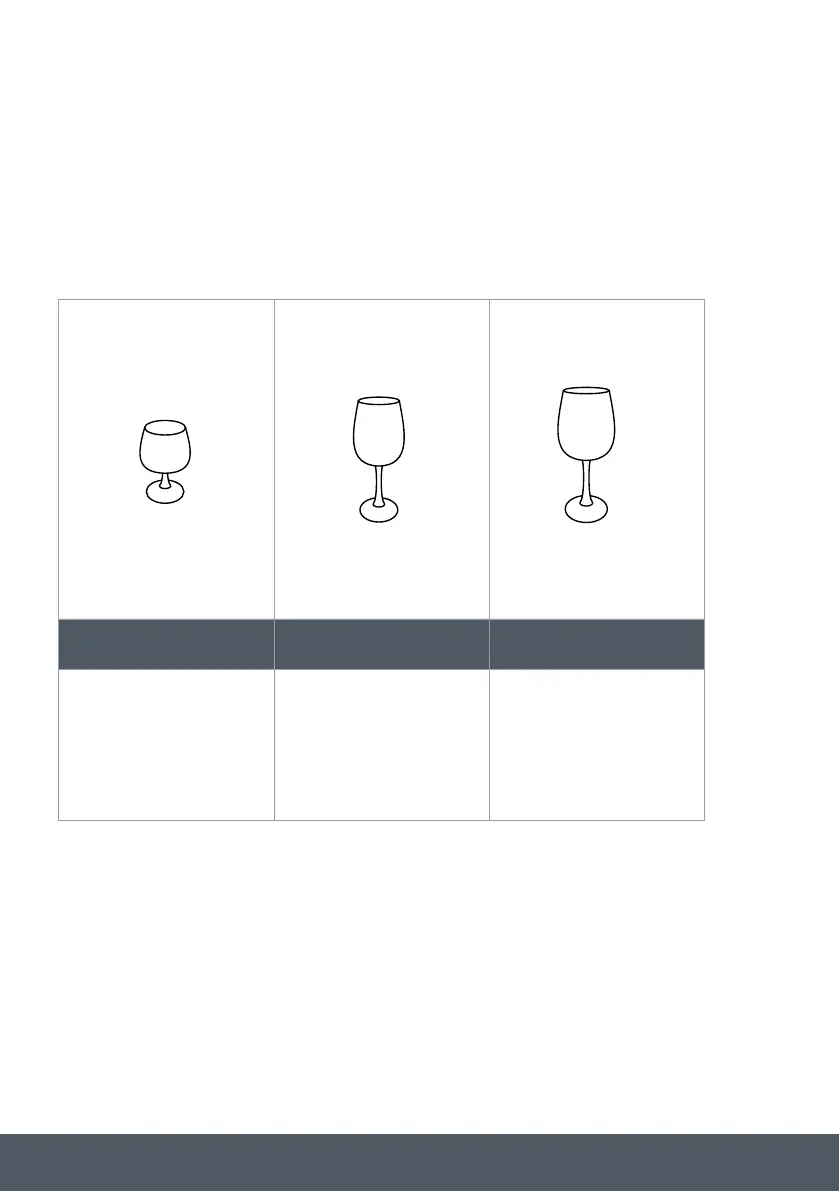 according to the size of the wine glasses.