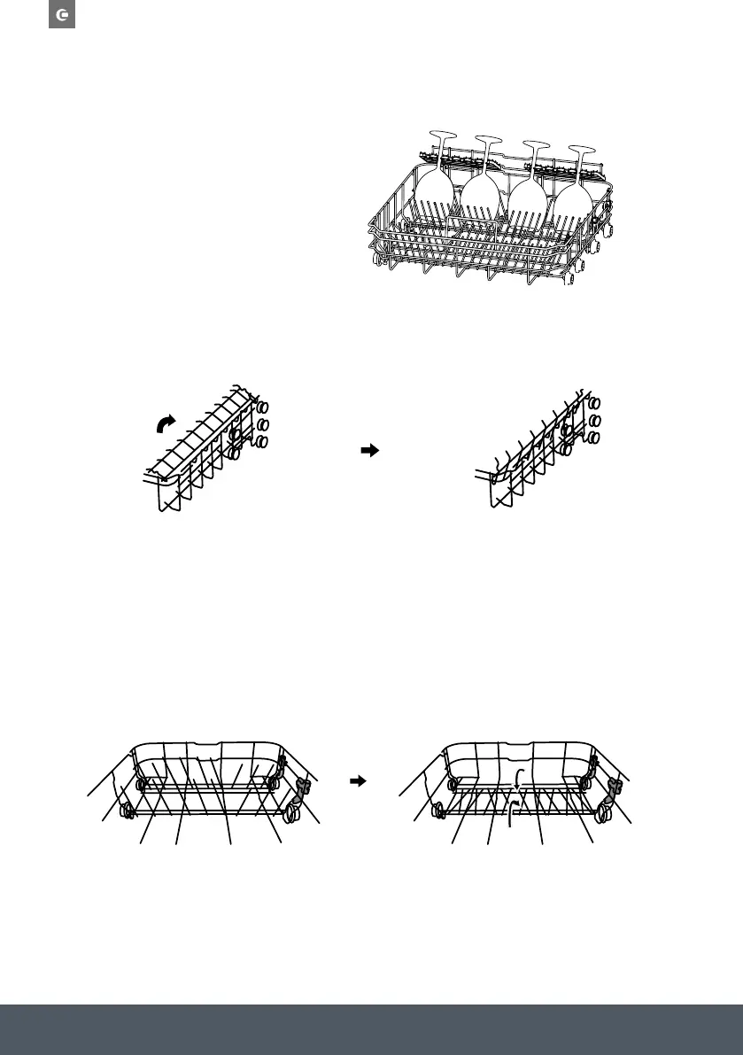 To make room for taller items in the upper basket, raise the cup rack upwards. You can then lean