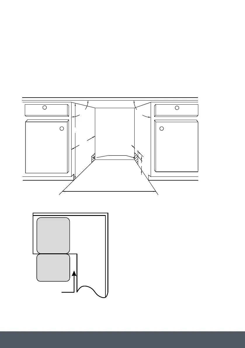 Cabinet dimensions Less than 5mm between the top of dishwasher and cabinet and the