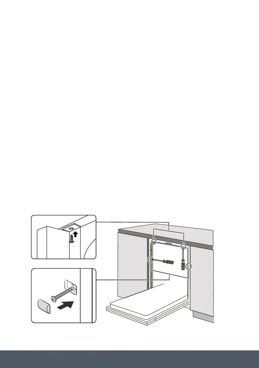 8. The dishwasher must be secured in place. There are two ways to do this: