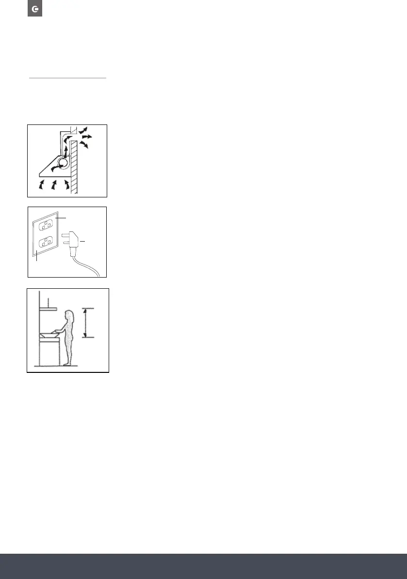 The cooker hood should be placed at a minimum distance of 65~76cm
