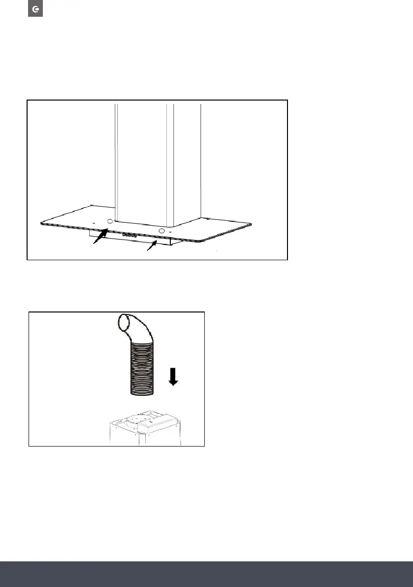 Fix the one-way-valve to the air outlet of the cooker hood. Then, attach the exhaust pipe onto the
