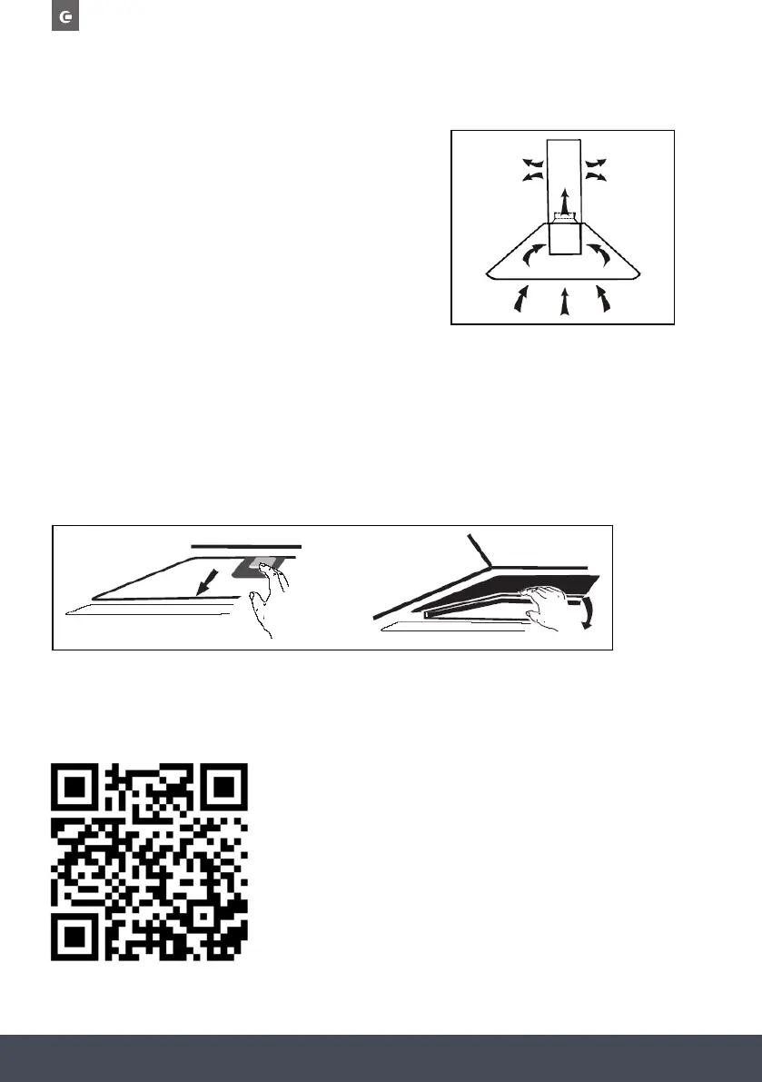 grease filter should be detached first. Press the release button and pull it downward as shown