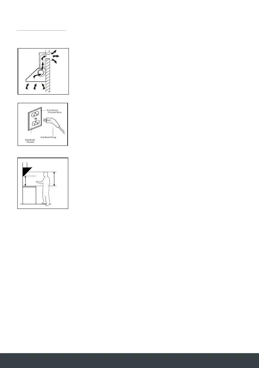 The cooker hood should be installed so that there is a space