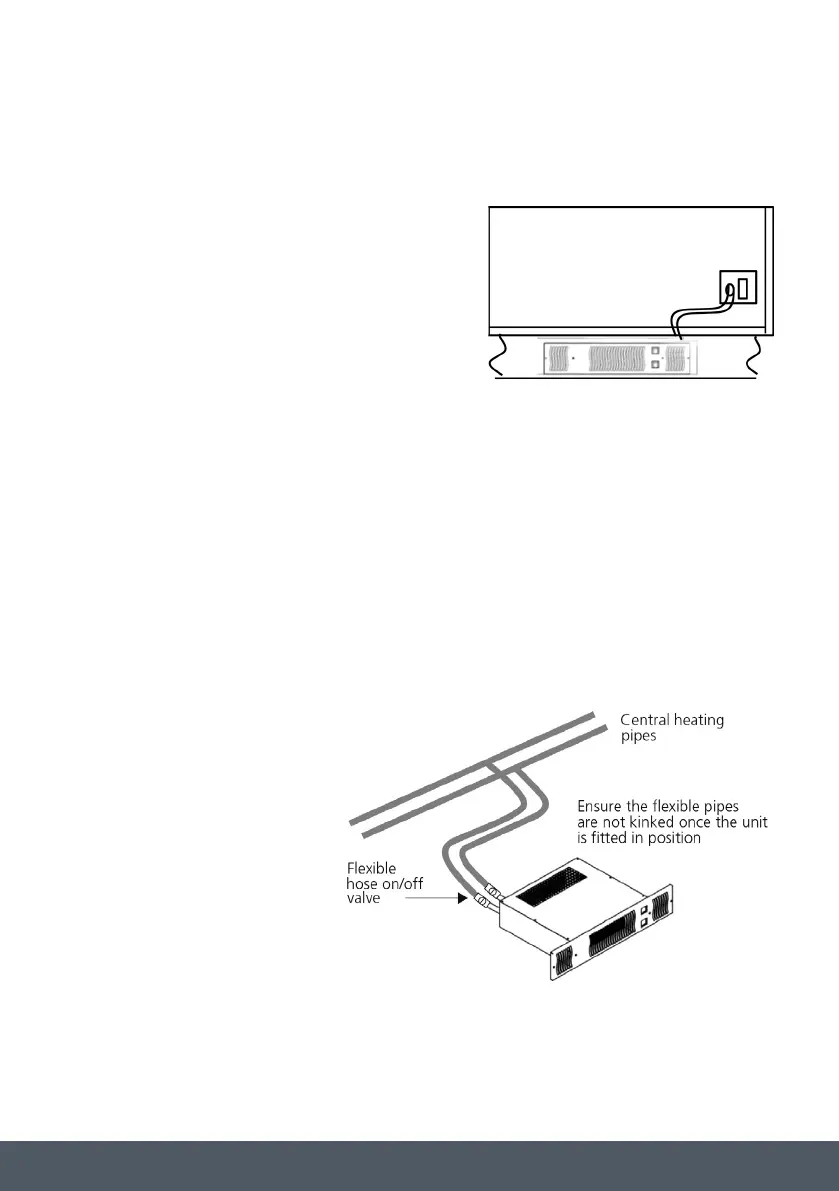 › Connect the valve end of the flexible hoses to the Plinth Heater, Note the direction of flow