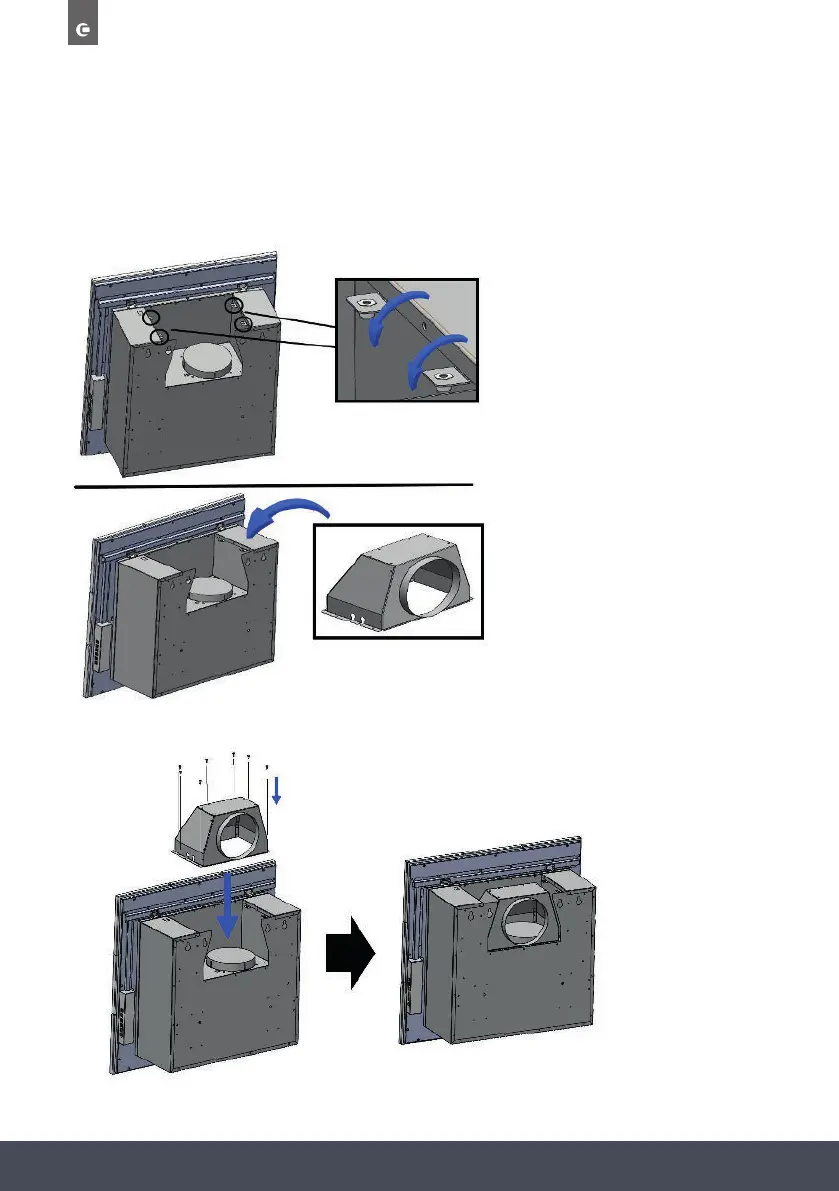 >Lift up the internal chimney until it covers the bracket and secure it by fixing the screws