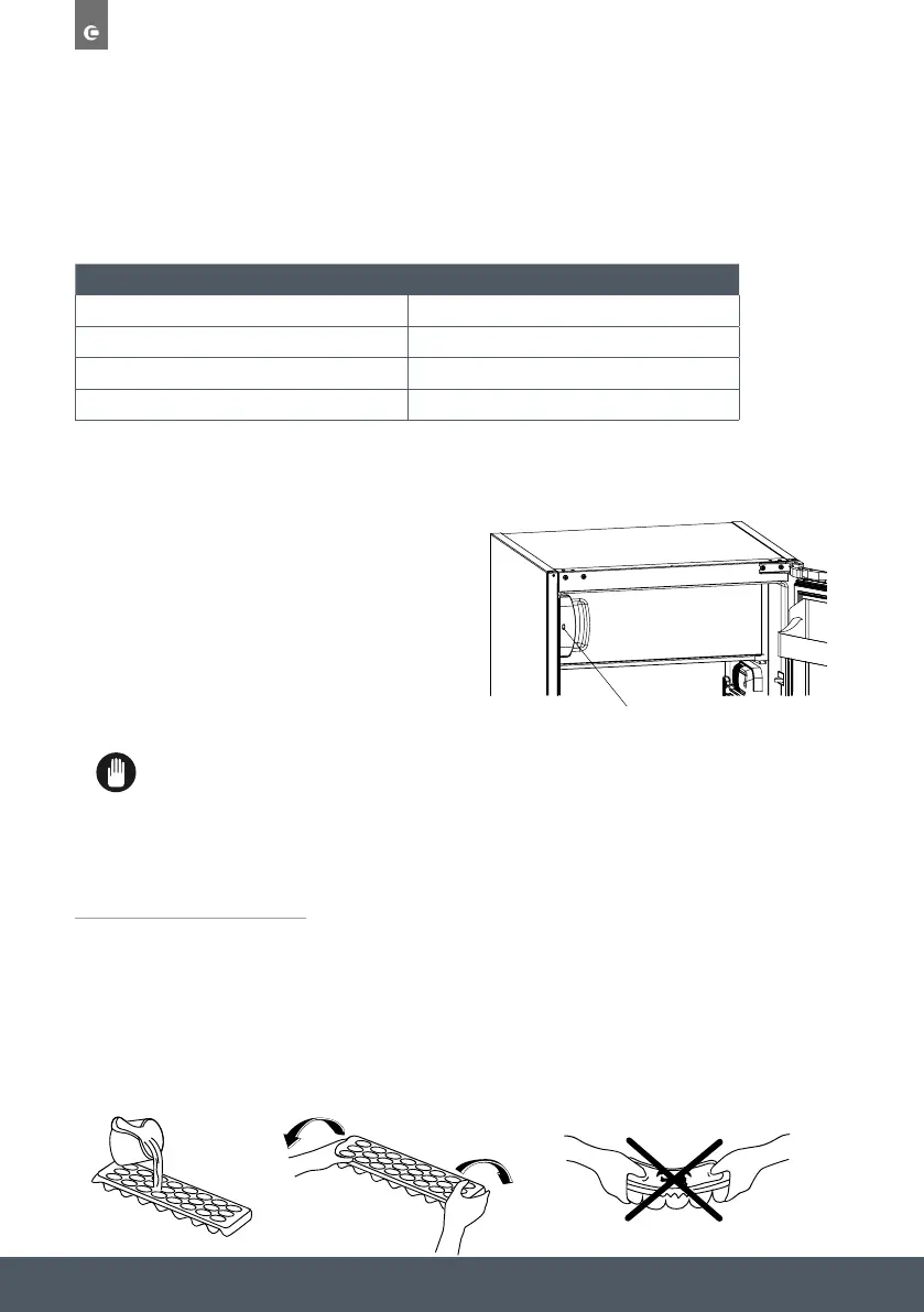 › Fill the ice tray with water and place in freezer compartment.