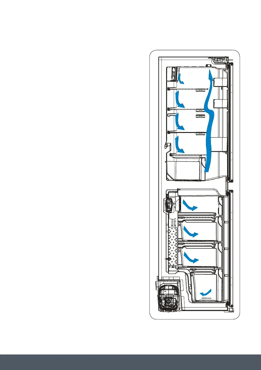 throughout the cooler and freezer compartments.