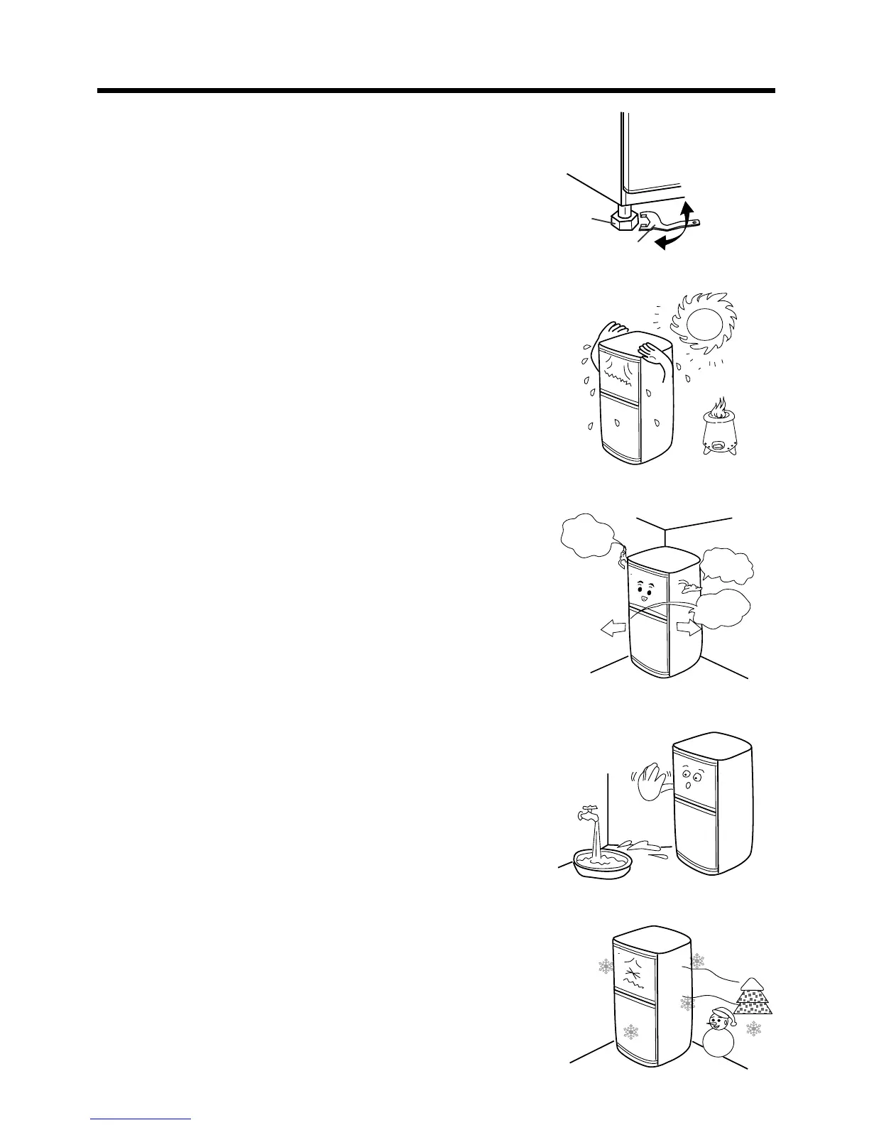 *Prevent the refrigerator from heat sources or direct