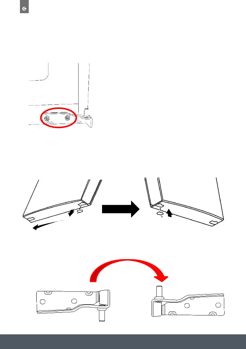› Unscrew the 2 screws from the lower hinge and remove the hinge.