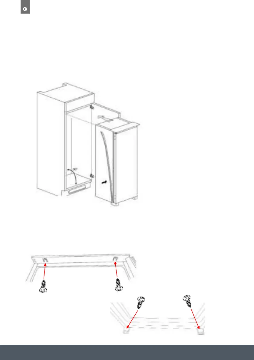the cabinet wall. Fix the appliance in 2 places, 2 torx headed screws in the top plinth at the