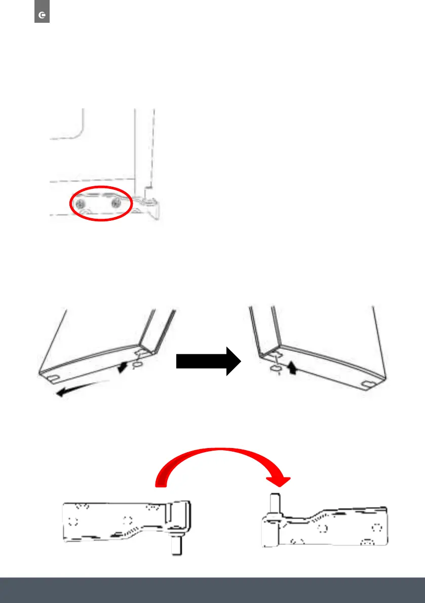 › Flip over the upper hinge 180° (so the pin is pointing upwards) and fix on to the opposite