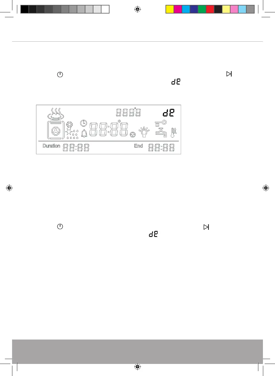 Press the button to turn the oven on (in standby mode). Press and hold the