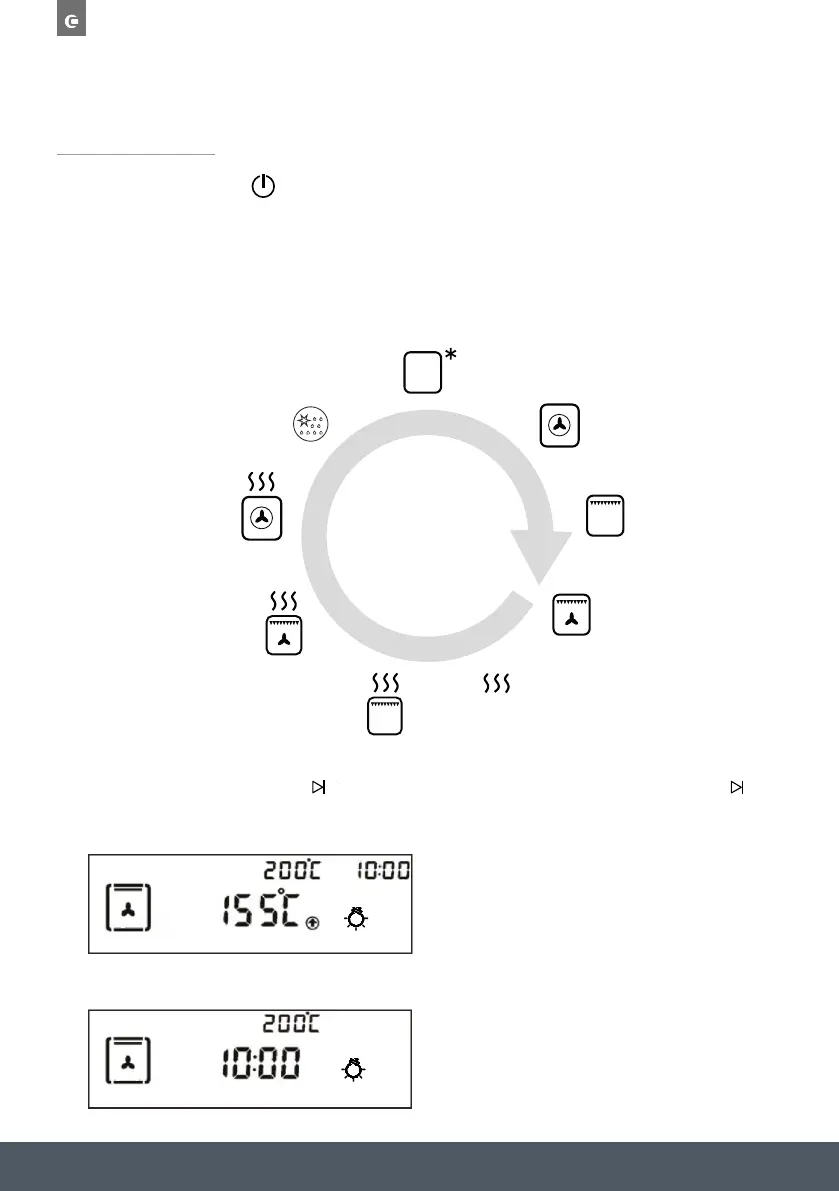 start cooking. Once cooking has started the display will show the current oven temperature.