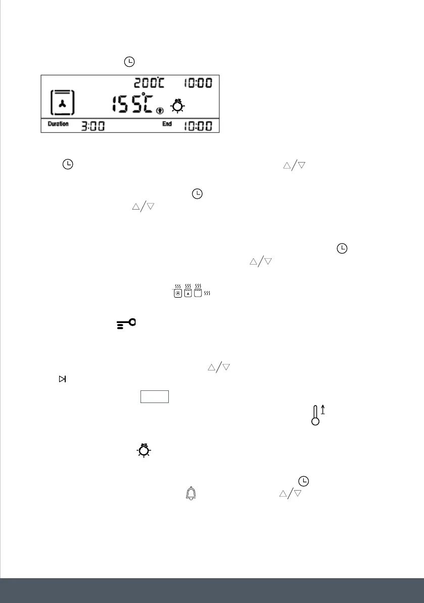 pressing / and then press to set the duration. Once the time is up, an alarm will sound and the oven