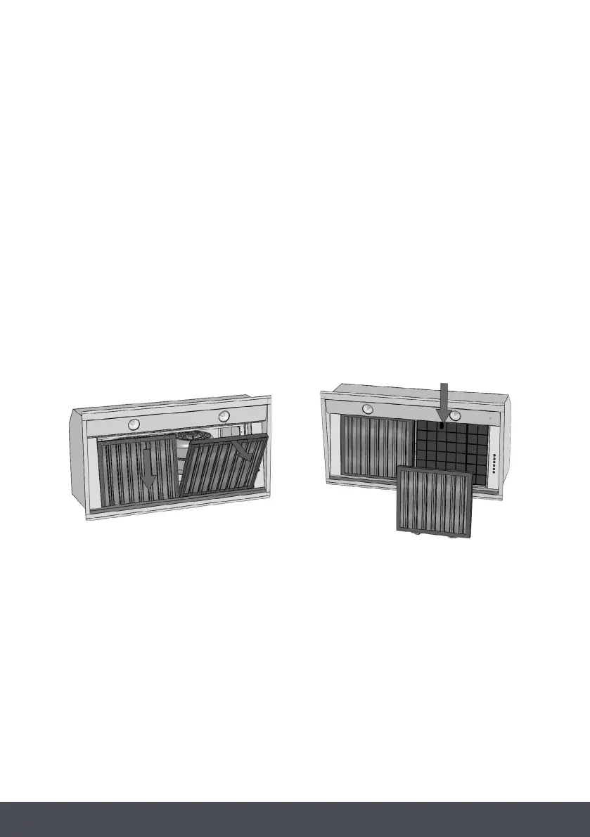 remove the grease filters and the active charcoal filter if they have been fitted. Press on the
