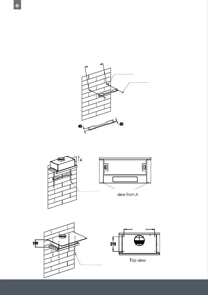 panel supports the hood body. Keep a distance of 199mm between bottom of the bracket and
