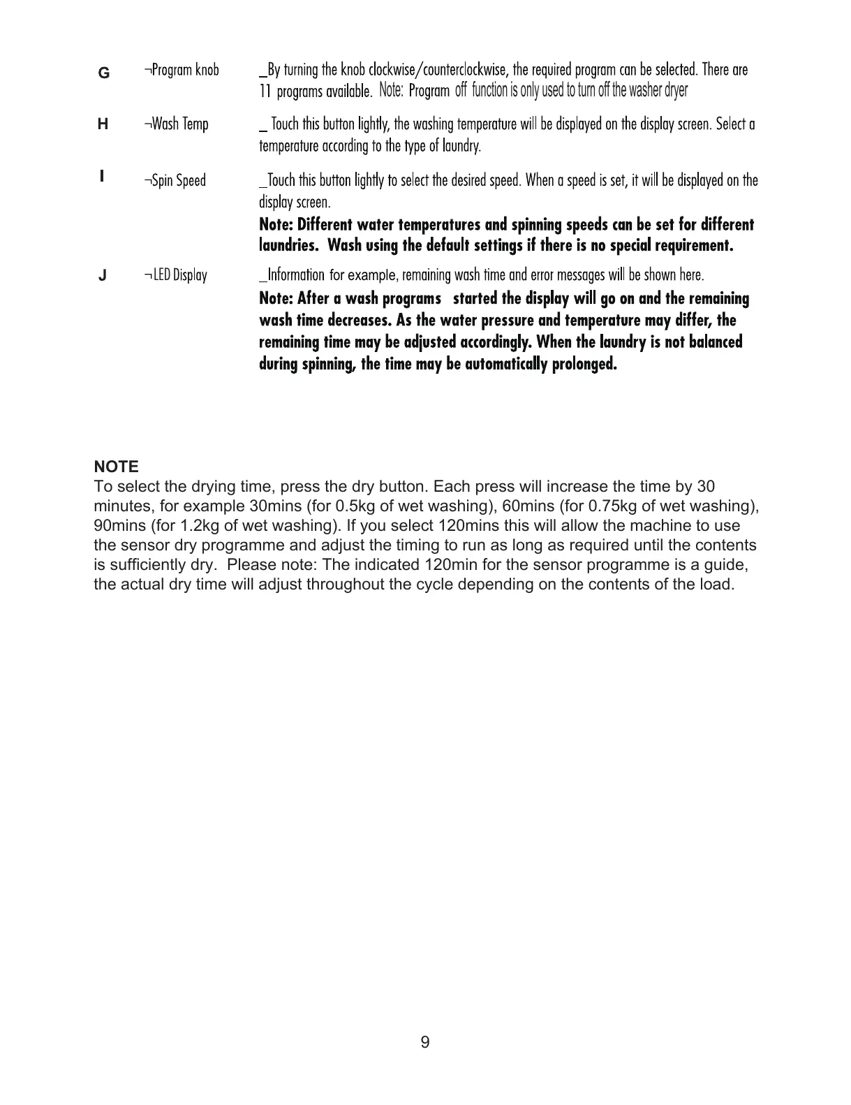 1RWH RII IXQFWLRQLVRQO\XVHGWRWXUQRIIWKHZDVKHUGU\HU