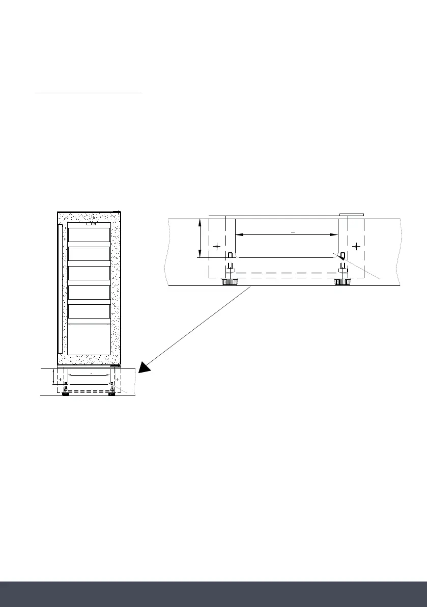 This model is recessed to fit a kitchen plinth. A H75mm vent slot is required in the plinth to