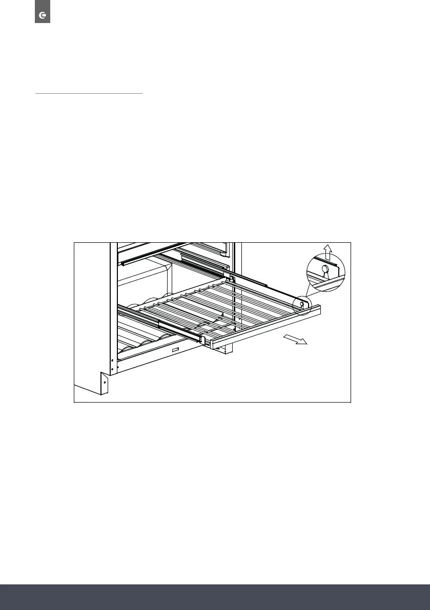 3. Holding onto the shelf runner, push the shelf in and then pull up at the back to release