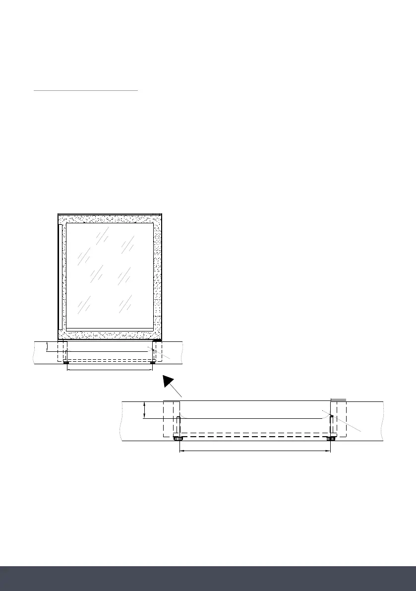 This model is recessed to fit a kitchen plinth. A H55mm vent slot is required in the plinth to
