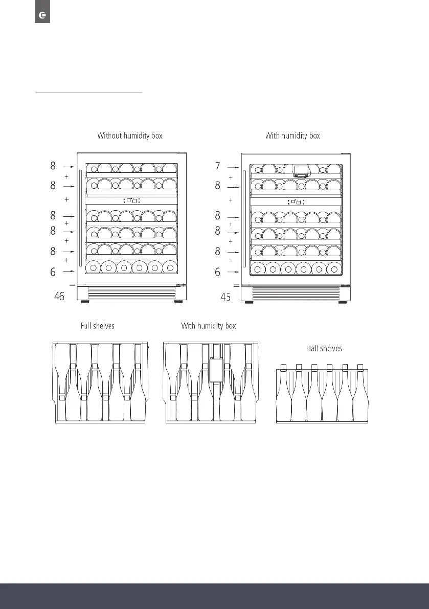 Stores max. 46 Bordeaux style bottles 750ml.