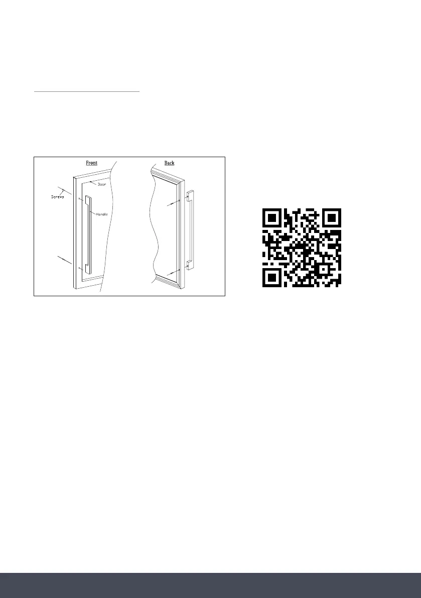Remove the door gasket on the drilled holes side to install the handle. (see below drawing).
