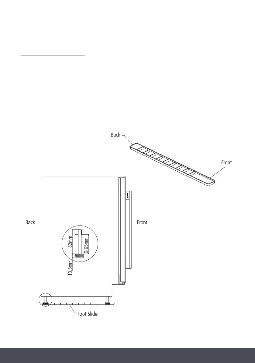 front foot in the location marked ‘Front’. Once fitted to both sides of the wine cabinet the