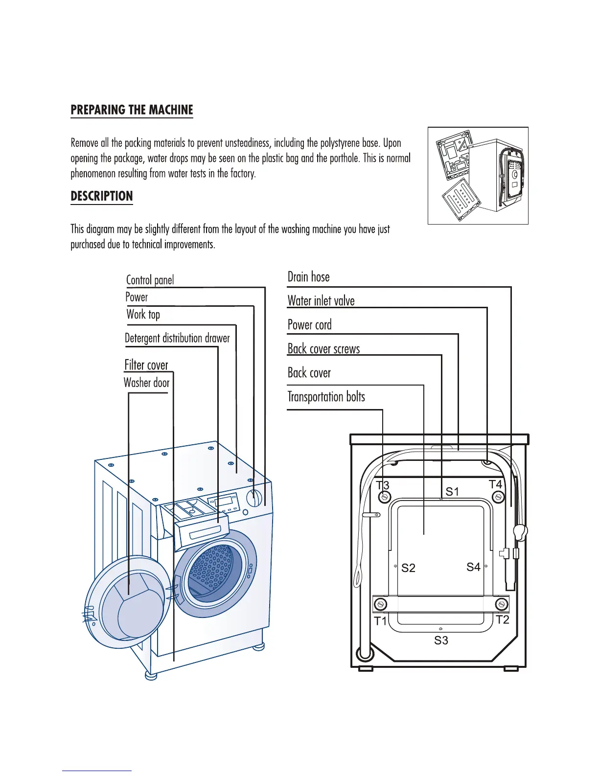 Caple WMi2003 - Preparing the Machine; Washing Machine Description