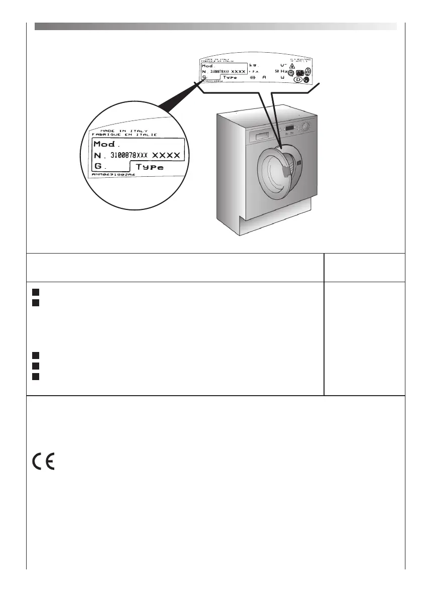 NB: For specifications regarding electrical data, see the data panel on the front of the washing