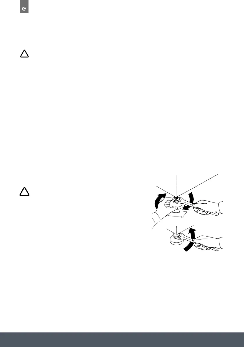 3. Lock the foot, screwing in the nut, until it tightens against to the bottom of the