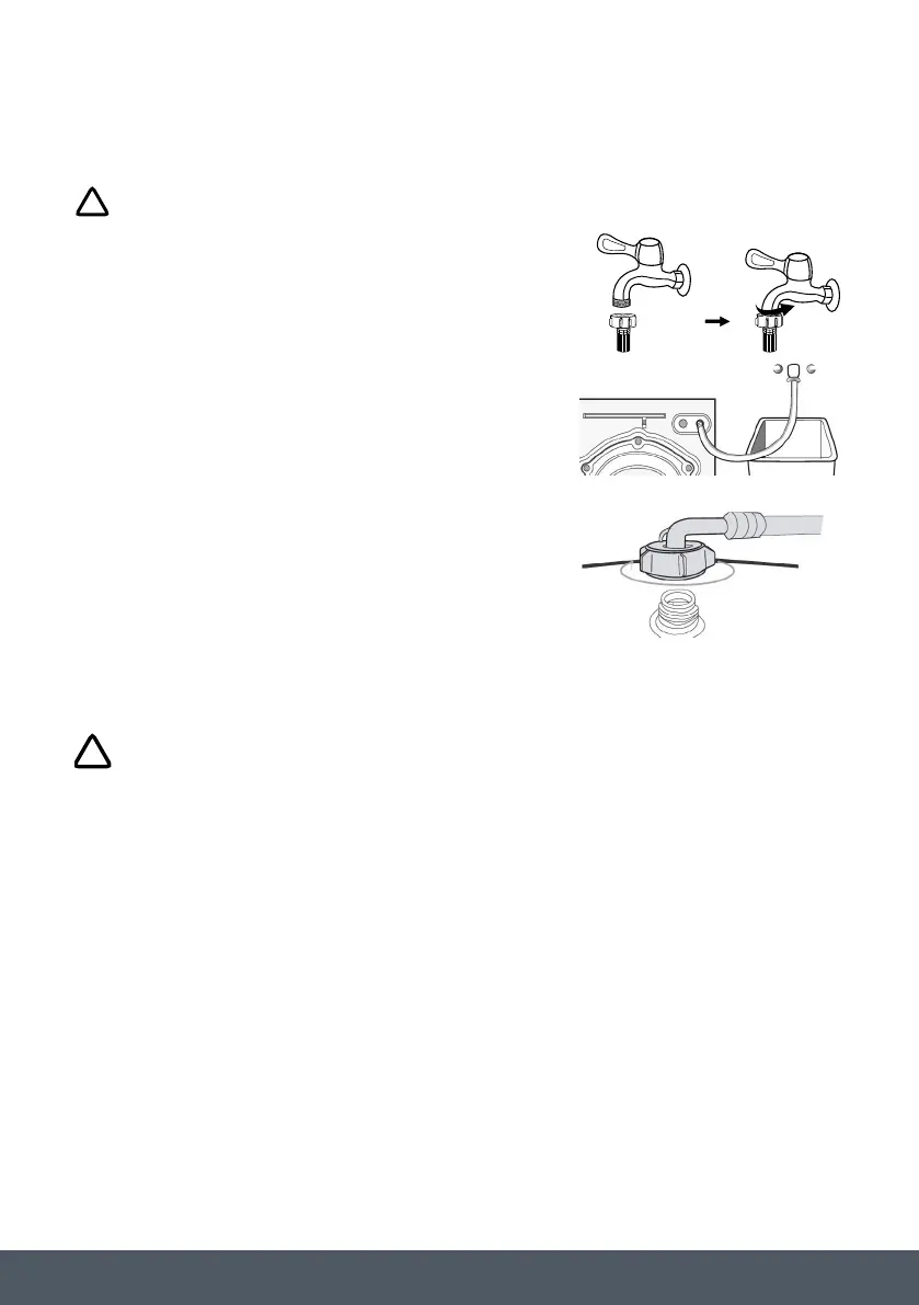 above the floor using the curved drain hose support. Care must be taken to avoid kinking or