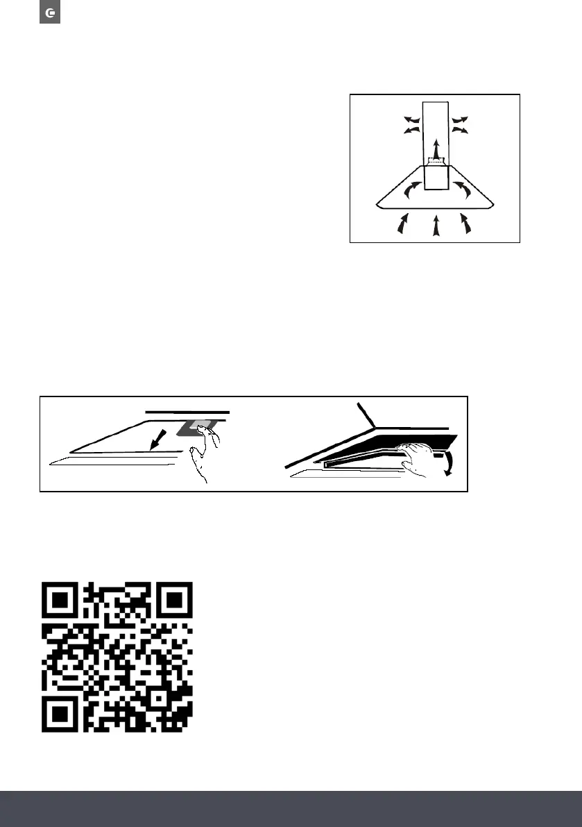 grease filter should be detached first. Press the release button and pull it downward as shown