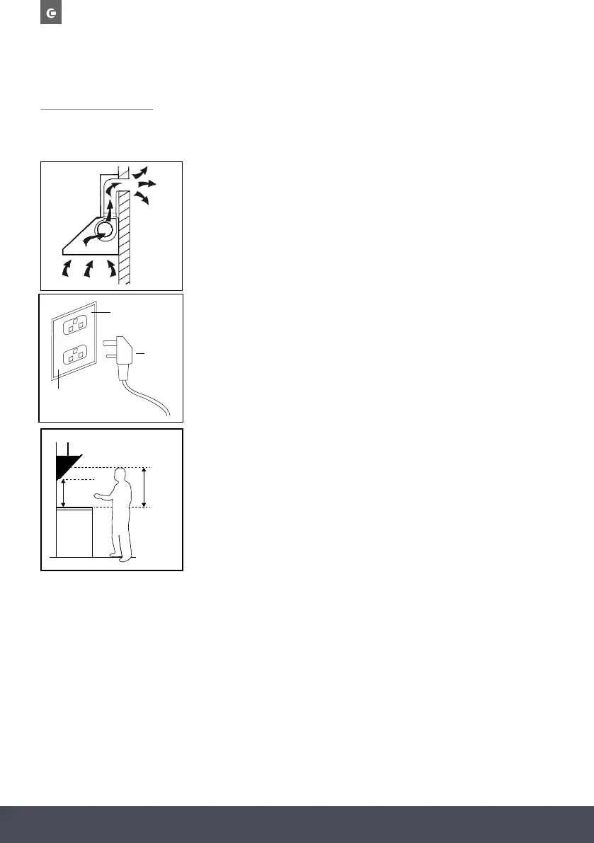 The cooker hood should be installed so that there is a space of
