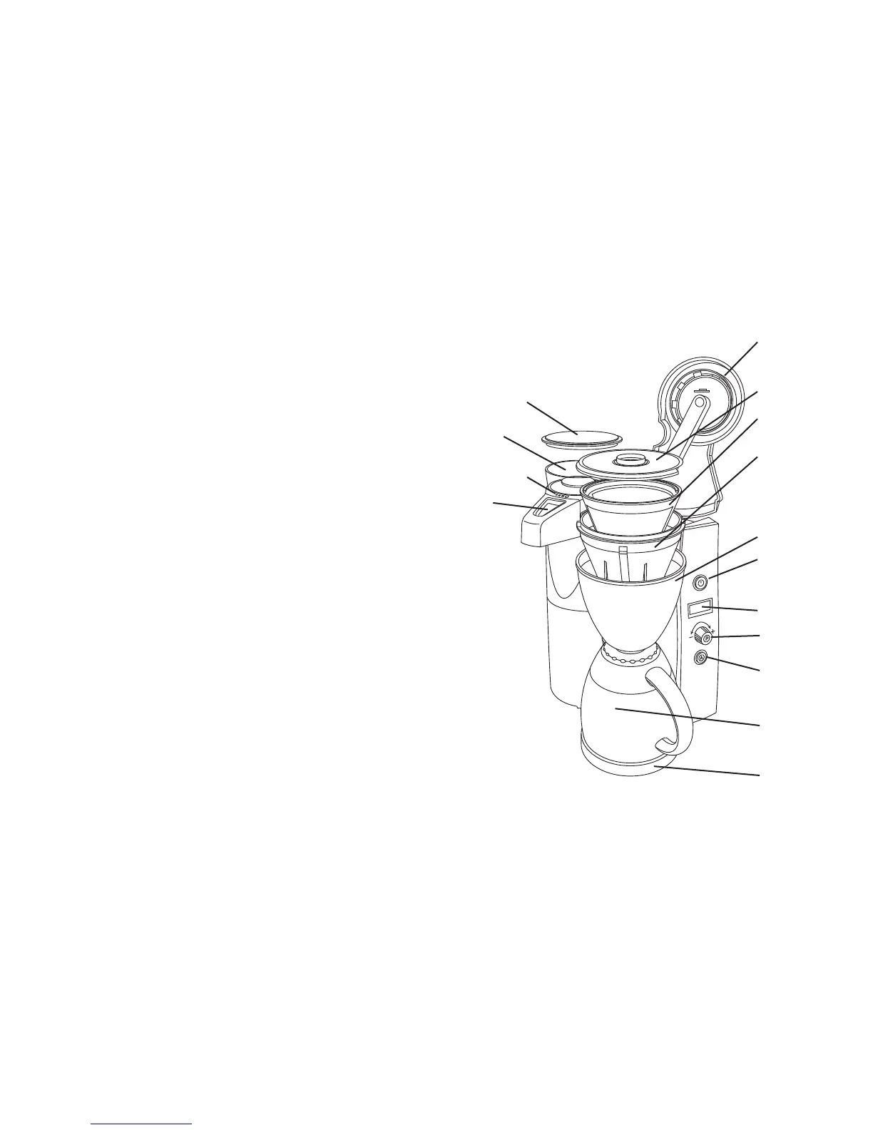 • Never open the water container lid during the brewing process.